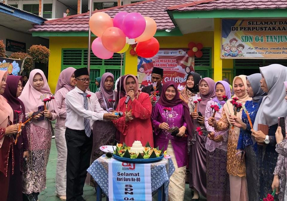 SD Negeri 04 Tanjung Aman, Kecamatan Kotabumi, Lampung Utara, menggelar peringatan Hari Guru Nasional tahun 2025 dengan penuh suka cita. Seluruh rangkaian kegiatan dirancang dan dilaksanakan langsung oleh mahasiswa asistensi mengajar FKIP UMKO yang berkolaborasi dengan pihak sekolah pada Rabu, 25 November 2025. Mengingat sistem belajar mengajar di sekolah ini terbagi menjadi dua sesi (pagi dan siang), maka peringatan Hari Guru Nasional pun digelar dalam dua sesi terpisah agar seluruh siswa dari kedua shift dapat turut serta merasakan kebahagiaan hari istimewa tersebut.